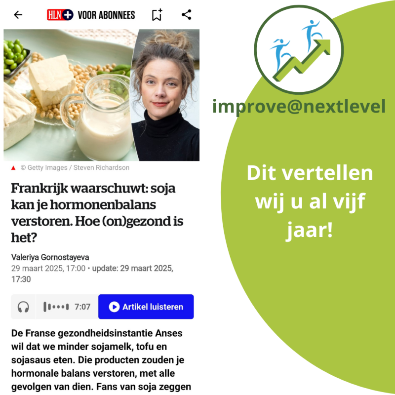 Soja is een xeno-oestrogeen en die moet je proberen zoveel mogelijk te vermijden.